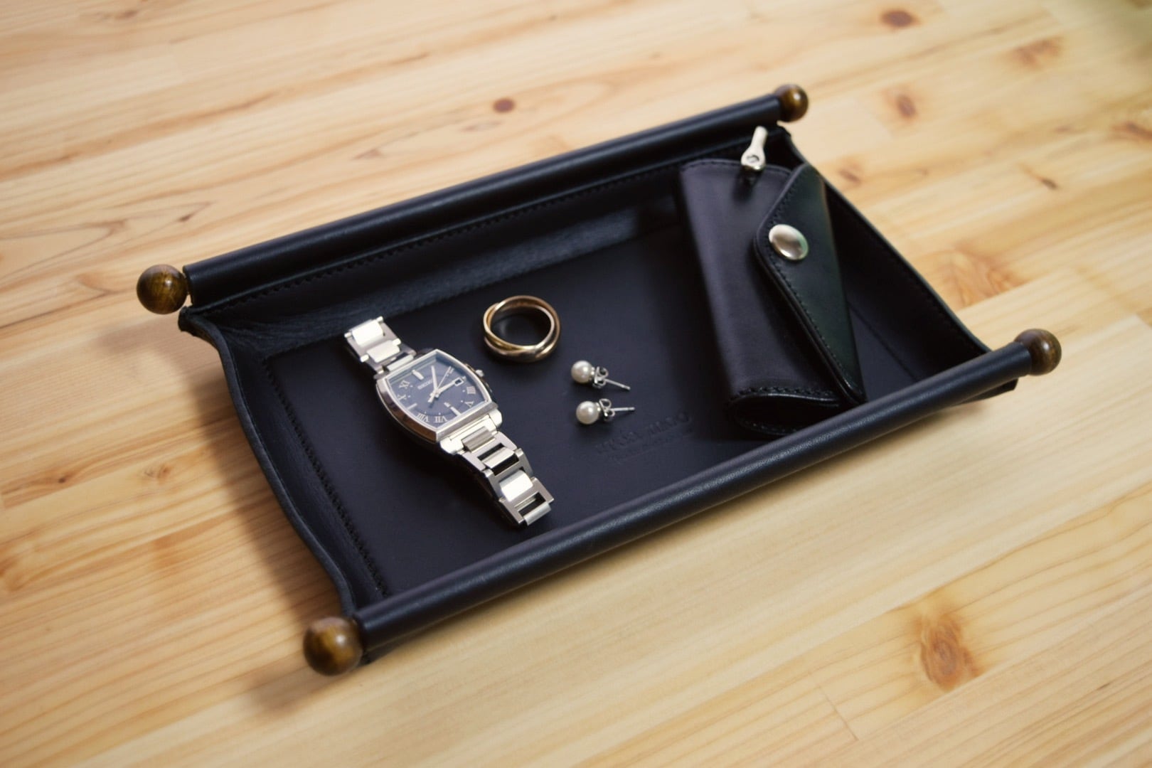 腕時計や眼鏡、ジュエリーなど色々なものを入れて頂けます。オフィスやショップなどではレジのトレイとしてもお使いいただけます。