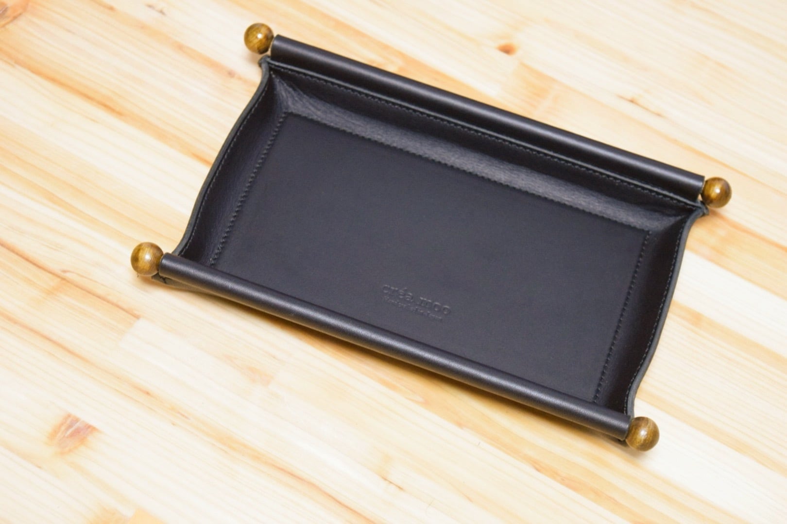 本革と木材を組み合わせた、シンプルでありながら高級感のあるトレイ。